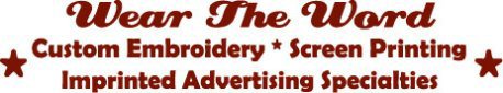 Wear The Word is your source for quality screen printing, custom embroidery and imprinted advertising items. Since 2001, Norb & Colette King have provided Central Kentucky with professional service, specializing in screen printing for churches, schools, and businesses. Your order will be done right, at the right price, and right on time. Embroidery of golf shirts, jackets and caps are available with fast turnaround. Wear The Word can assist you with banners, signs, plaques, awards and trophies. Also check with Wear The Word for quotes on advertising items like calendars, pens, coffee mugs, and trade show items. E-mail us or call Norb King for quotes and information at 859-749-3098.